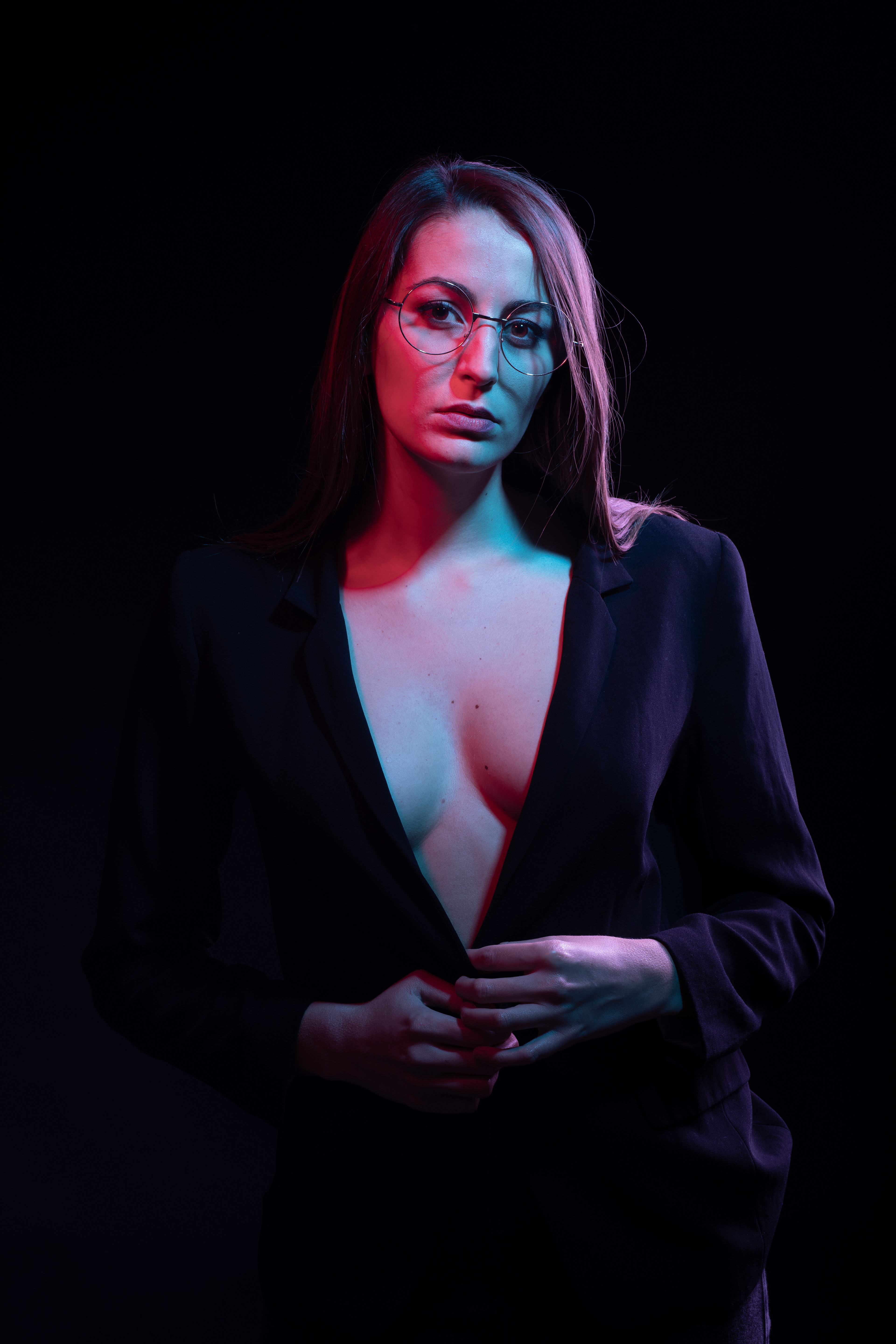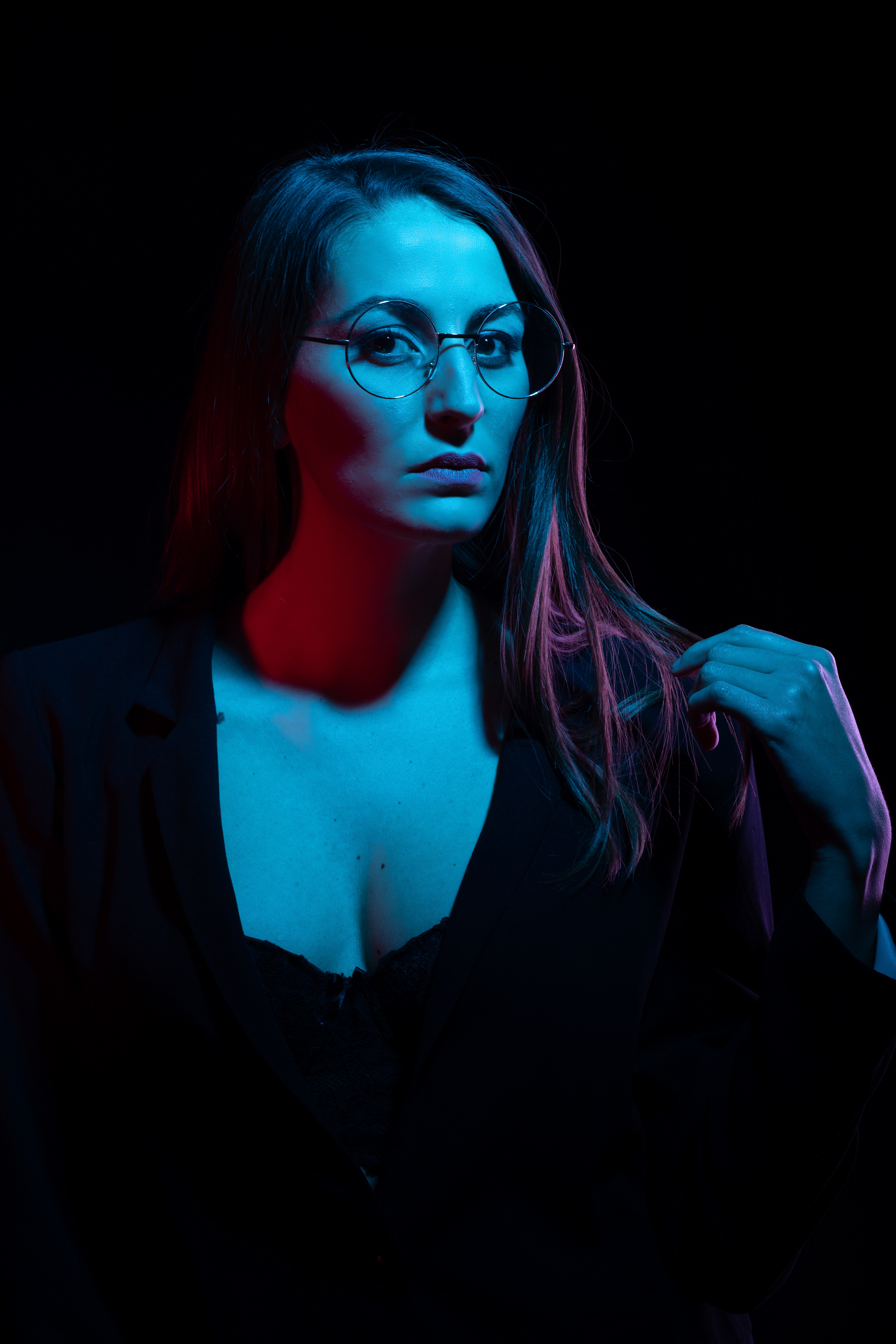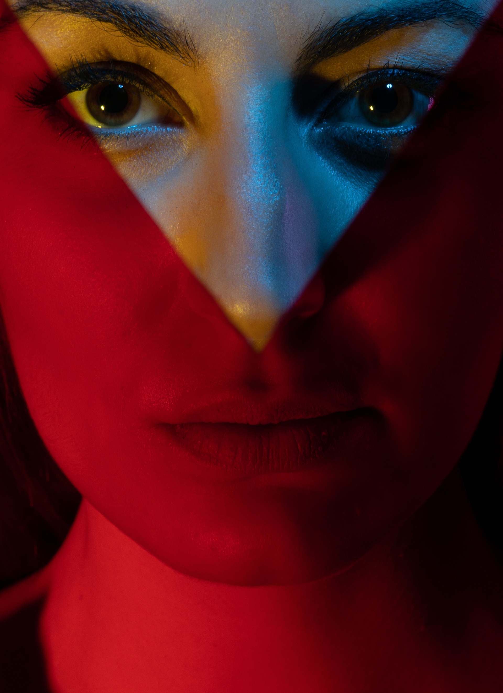 Progetto in studio con l'utilzzo di flash monotorcia con gelatine colorate.